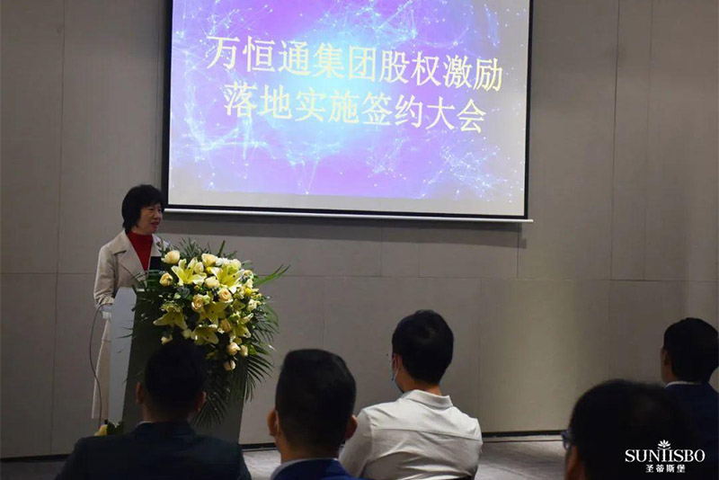 接下来,集团副董事长梁碧霞女士上场致辞,她讲到:3003.com集团在王董的领导下,从1982年一直奋斗至今,已走过39年的历程,这离不开大家共同的努力,她号召在座同仁为自己加油鼓掌。她进一步强调:此次的股权激励既是感谢大家以往为3003.com集团的付出,同时也是为了将来大家拥有更美好的生活。3003.com此次股权激励不是终点而是起点,我们要挖掘和吸引更多优秀的人才加入3003.com。只要我们上下一条心,内外一股劲、坚定信心,就能把3003.com做成百年企业,把圣蒂斯堡做成有美誉度、消费者喜欢的、享誉全球的家具品牌!
