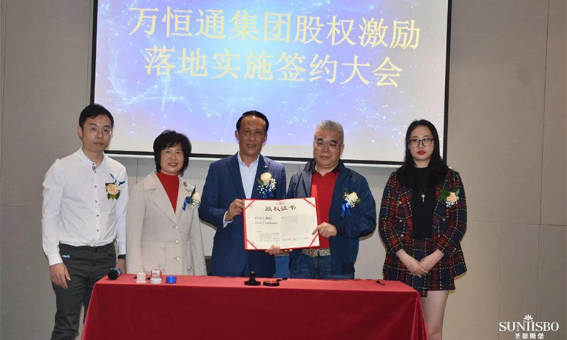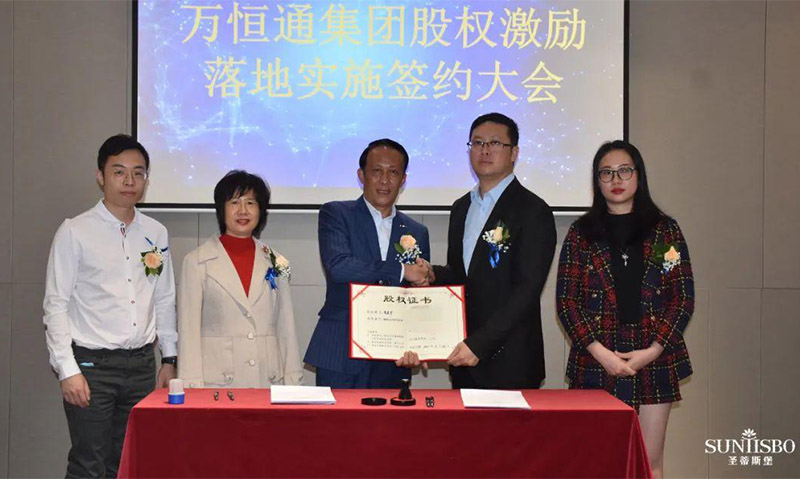 3003.com集团执行董事及法人代表王浩基先生正式为第一期六位虚拟受限股股东授予荣誉证书并签订股权分配协议。