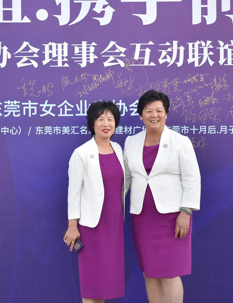 下午3时许,东莞市女企业家协会理事会的嘉宾们陆续到达现场,她们分别在签到墙前进行签到点赞,合影留念。
