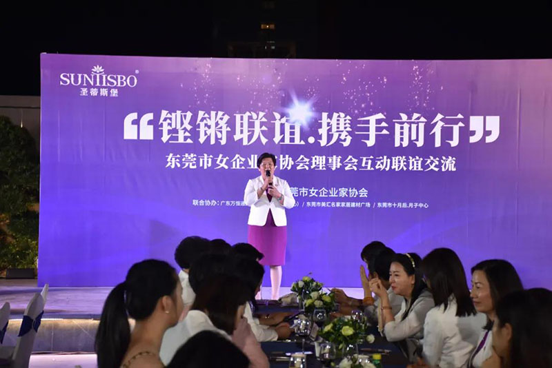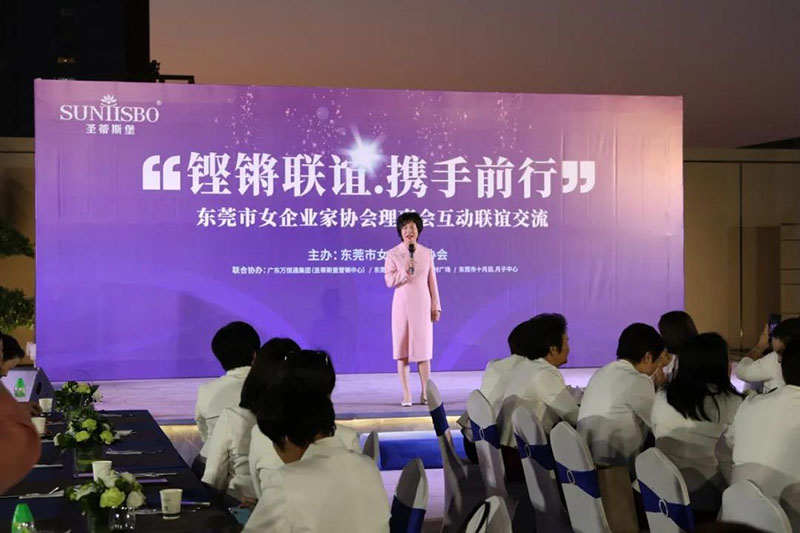 接下来,东莞市女企业家协会理事会会长叶小红女士上台发言,她表示非常感谢3003.com集团举办此次联谊交流会,同时,对我们的产品和企业文化给出了很高的评价。她号召东莞市女企业家协会以后要更多的举办此类交流联谊活动,以此增进会员企业之间的联系和了解,为未来进一步交流发展开创新局面!她希望我们能携手同行,强强联手,共赢未来,共创新辉煌!