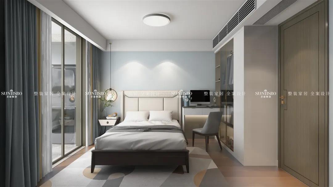 次卧是业主给爸爸妈妈预留的老人房,整体感觉都是比较沉稳的,配色方面也是容易助眠的颜色,真的是非常贴心啦~