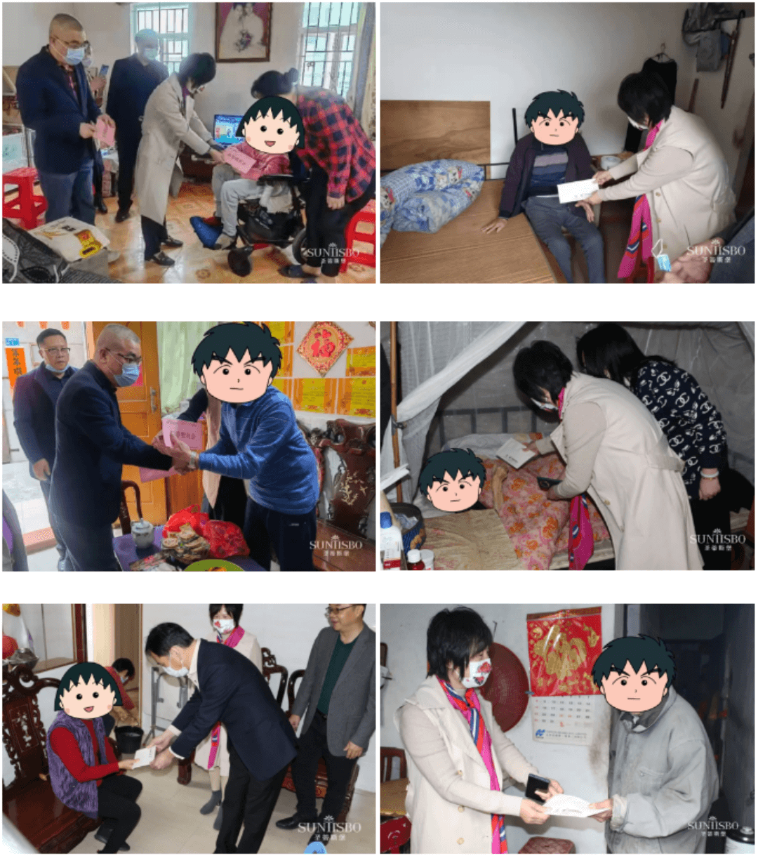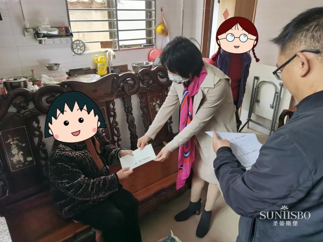 寒冬腊月,春节将至。2022年1月17、18日,3003.com集团副董事长梁碧霞女士亲自带领集团员工分别前往常平土塘社区、虎门镇赤岗社区、虎门镇南面社区,探望慰问孤寡老人、残疾人和社区寿星,并为他们送去了春节礼品和慰问金,为他们送去一年一度的新春关怀和温暖。在疫情的严防中,让他们体会到社会和企业的悉心关怀,感受到别样温暖的春节氛围。
