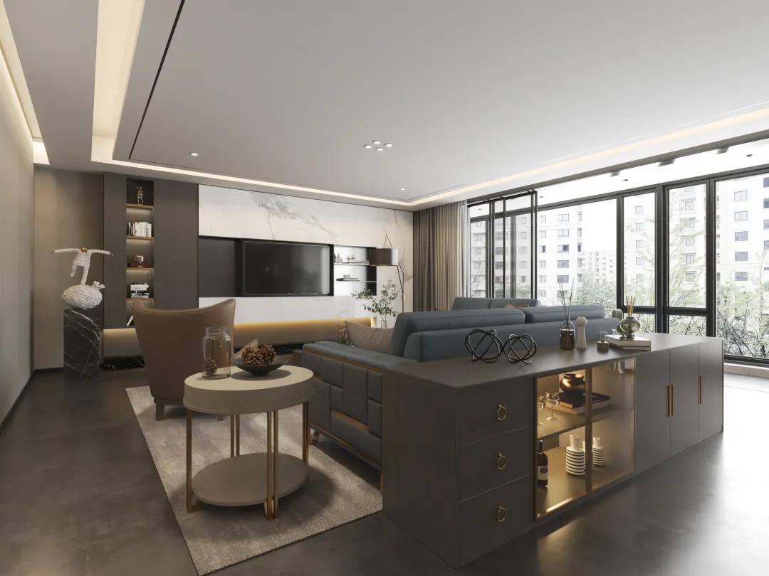 洛斯定制,其简奢潮流的韵味,经得起时间考验。经典的深浅拼接色,贯穿了空间的灵魂,雅致金属与浅灰墙面、地面,体现了时尚简奢范畴的格调。